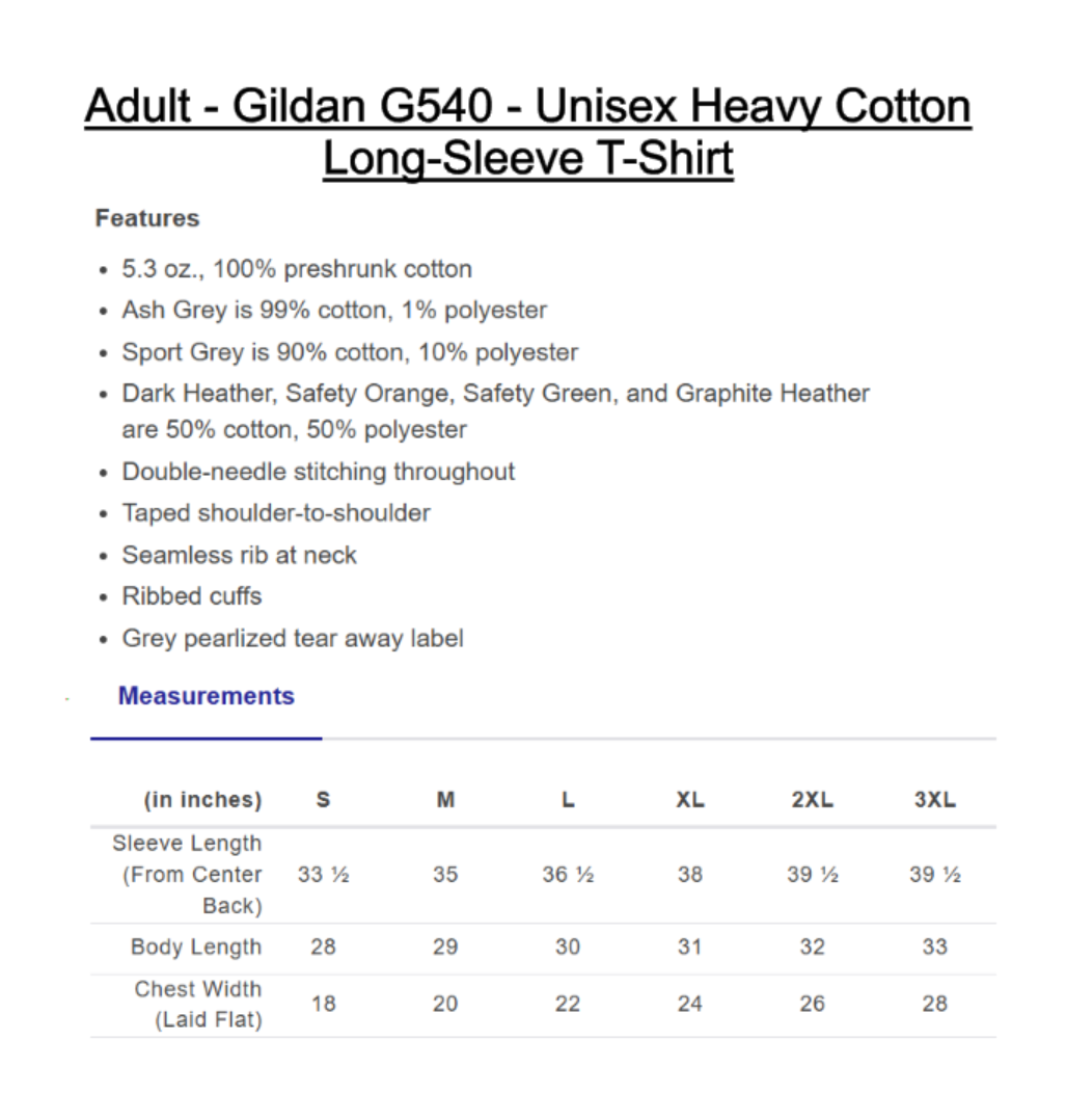 Long Sleeve Shirt Brand: Gildan G540 - Unisex Heavy Cotton Long-Sleeve T-Shirt