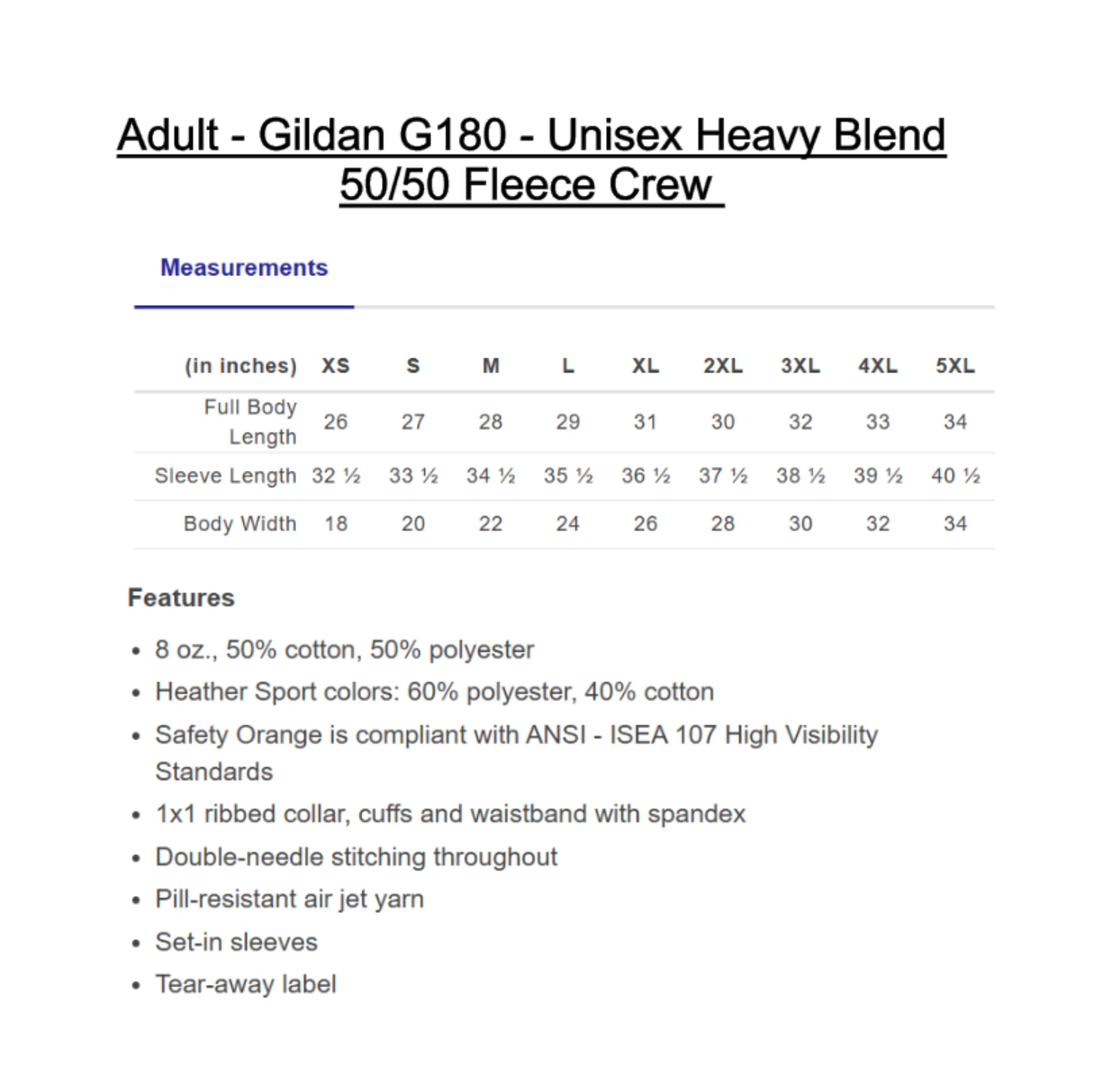 Sweatshirt Brand: Gildan G180 - Unisex Heavy Blend 50/50 Fleece Crew